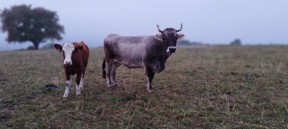 geboren am 25.6.2018 Kathi ist hier am Hof auf die Welt gekommen und ist im Stall sehr zutraulich und verlangt nach Streicheleinheiten. Auf der Weide jedoch ist sie stets am Rande der Herde, nie mittendrinn, sondern eher für sich. Als ihr zweites Kalb Egon auf die Welt kam, war sie leider in Anbindehaltung und konnte sich nicht um ihn kümmern. Als wir in den Stall kamen, hatte Kathi mit ihrem Mutterglück abgeschlossen und wollte nichts mehr von ihrem Kalb wissen. Einen Tag gut zu reden und mit mehrmaligen Versuchen, ihr den kleinen selbstbewussten Egon schmackhaft zu machen, klappte es dann spät abends mit dem Mutterglück doch noch. Erleichtert waren wir alle gleichermaßen.